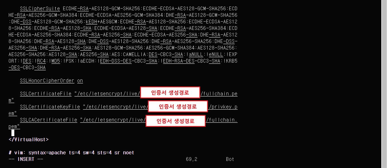 SSLCACertificateFile "/etc/letsencrypt/live/[도메인 주소]/fullchain.pem"
